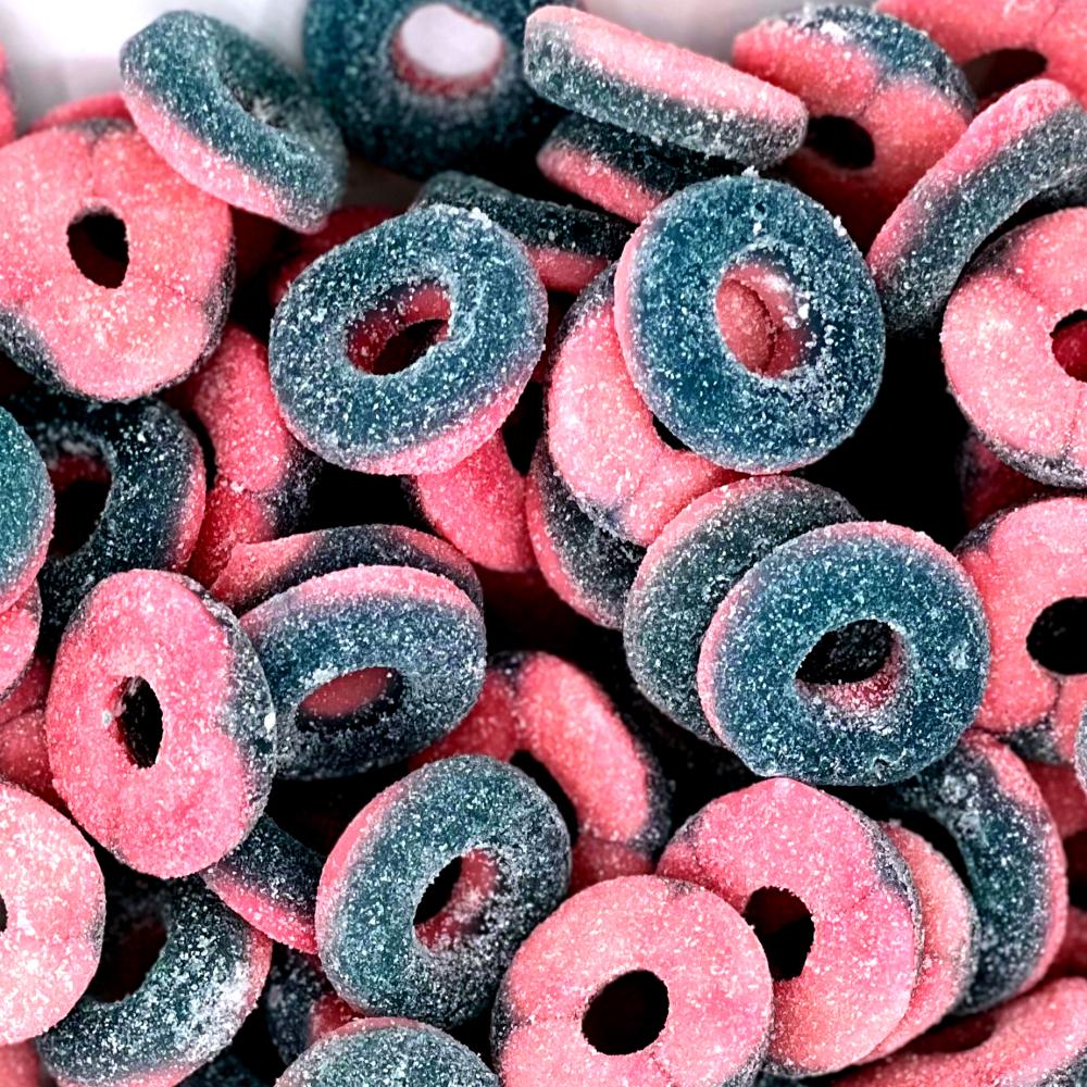 جيلي حلقات الفراولة والتوت الحامضة سكر